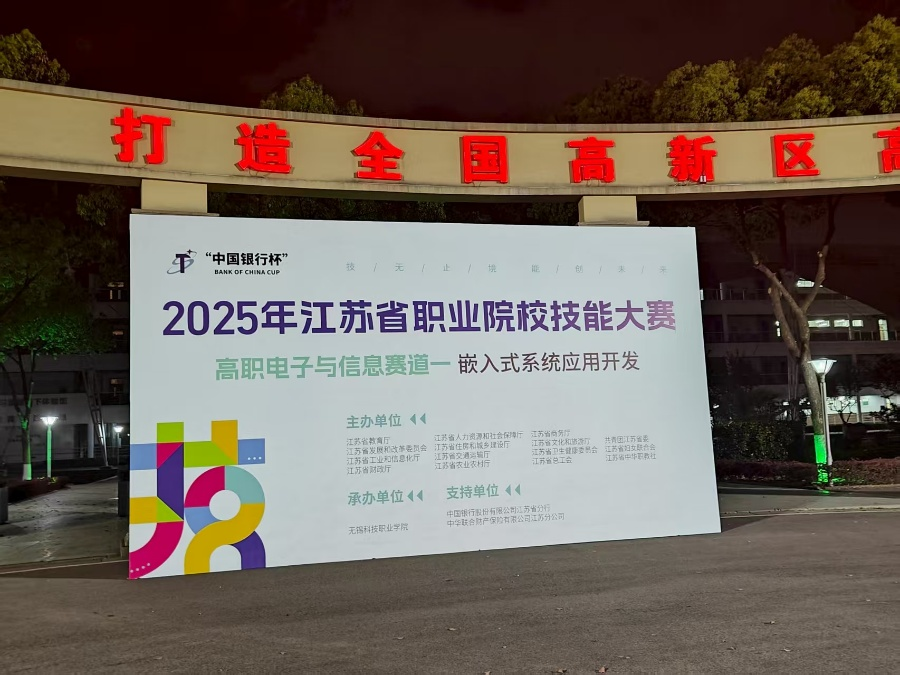 4月9日至10日,“中国银行杯”2025年江苏省职业院校技能大赛高职电子与信息赛道嵌入式系统应用开发赛项在无锡科技职业学院成功举办。本次比赛吸引了全省33支学生队伍和27支教师队伍同场竞技。我院电气自动化系许云英、乔平老师指导的学生团队李浩、王森、樊智敏荣获学生组二等奖。