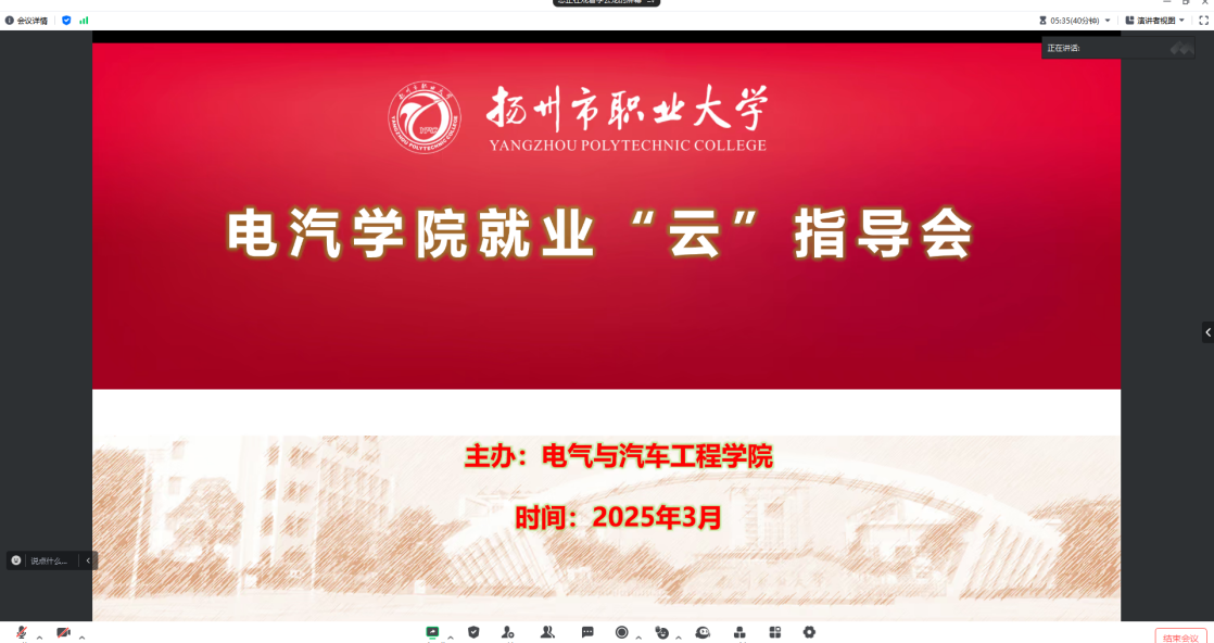 电汽学院结合专业特色、毕业生意向等情况,邀请江苏新扬新材料股份有限公司、浙江苏泊尔家电制造有限公司宣讲会、江扬集团有限公司开展空中宣讲会,深入介绍企业发展、岗位需求和职业发展路径。切实提高校园招聘活动参与度,充分体现了服务成效。