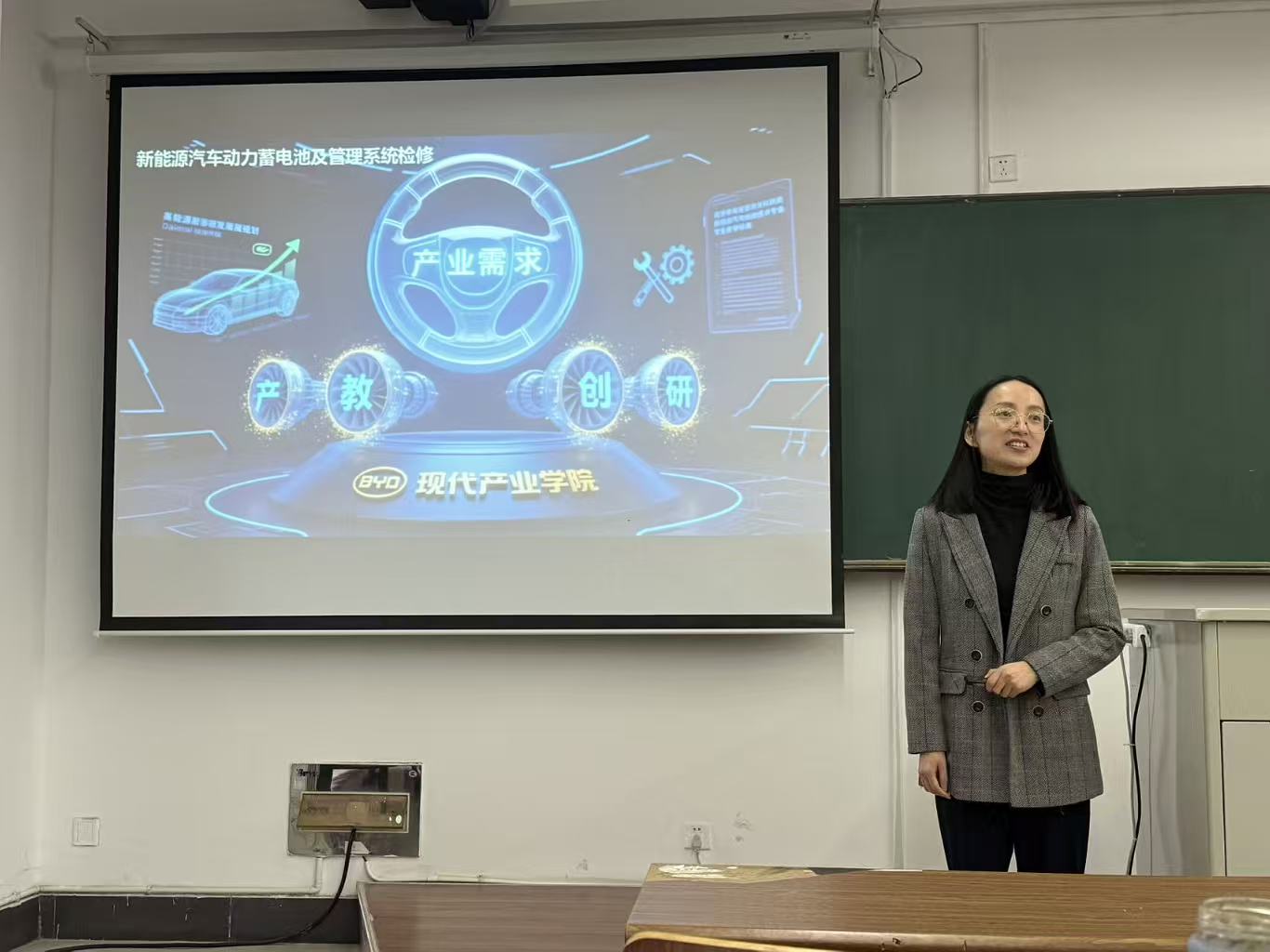 该项目以“精工强匠,‘锂’想担当”为育人主线,是新能源汽车检测与维修技术专业的核心课程。团队紧密对接比亚迪等龙头企业,依托共建的现代产业学院,创新构建了“产-教-创-研”四轮驱动的育人机制。
