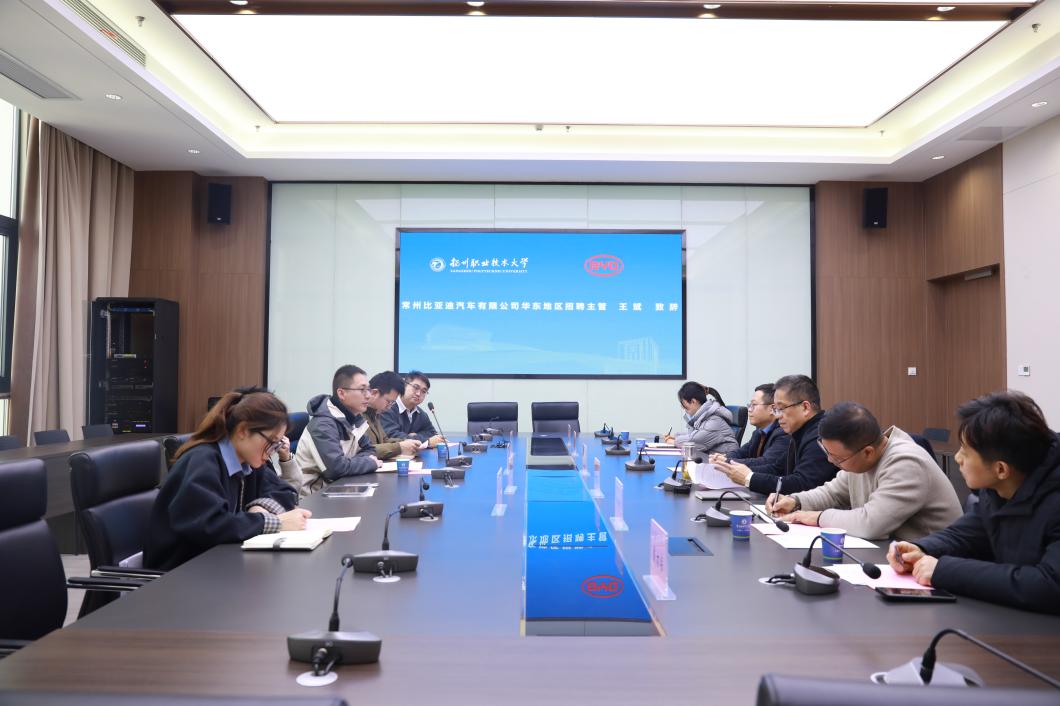 2026年1月9日下午,常州比亚迪技术研发与校企合作部相关负责人一行走访比亚迪产业学院,与学院“电池壳体”学生双创团队展开了一场富有成效的技术指导与项目推进会。此次交流不仅是企业对学生创新项目的实质性赋能,也标志着双方在新能源汽车关键零部件领域的产学研互动进入更深层次。
