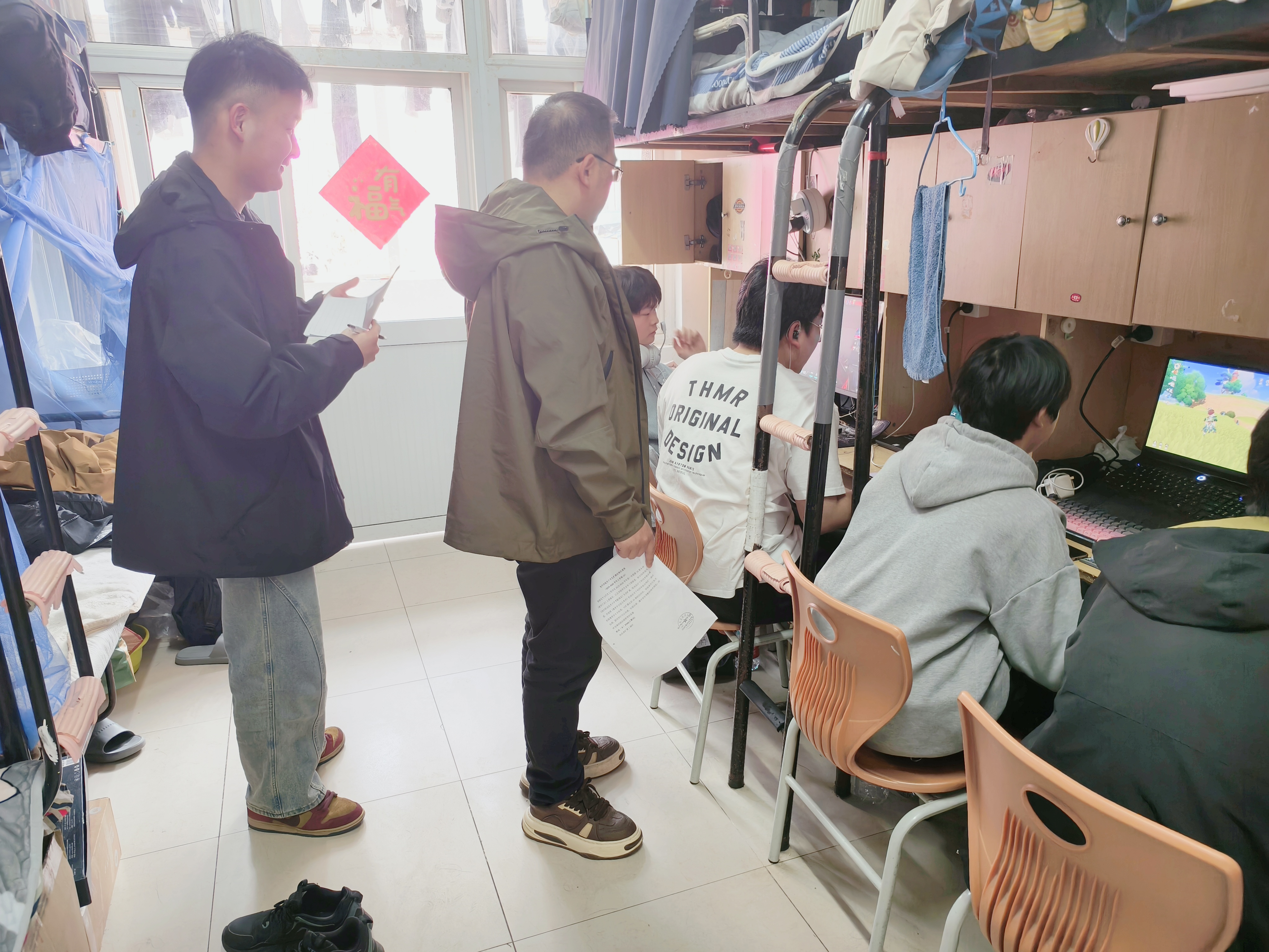 实践整治显实效,文明修身落实处。为推动安全育人从“知”到“行”的转变,深化文明修身月实践成效,筑牢一站式学生社区安全防线,学院以专题讲座为契机,依托学生党支部,组织由电气、汽车专业积极分子组成的志愿服务队伍,开展宿舍安全与卫生专项整治行动,将安全整治与文明修身、专业实践有机结合。学生志愿者充分发挥专业优势,深入一站式学生社区各宿舍,重点排查违禁电器隐患、私拉乱接电线等安全问题,现场讲解电气安全知识、隐患防范技巧,结合专业所学帮助同学排查电路隐患,践行“专业服务校园”的理念;同时,对宿舍卫生、物品摆放、文明作息等情况进行全面检查,对存在的问题现场反馈、限期整改,倡导学生养成整洁有序、文明自律的生活习惯,推动宿舍文明建设与安全建设深度融合,让“安全第一、文明至上”的理念融入社区生活的每一个角落。